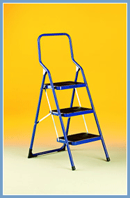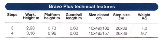 Home step-stool in painted steel. Equipped with uncontrolled closure blocking device and large steps covered with non-skid rubber. The guardrail is 60 cm high.