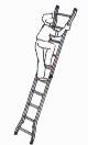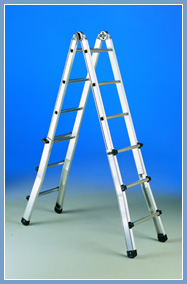 Telescopic ribbed aluminium ladder with large base.